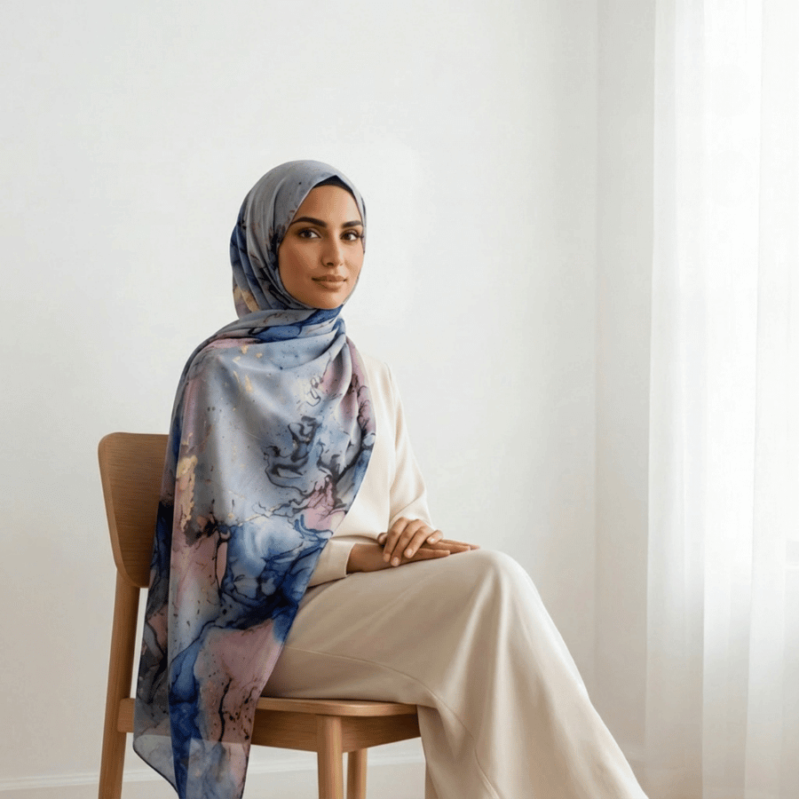 Luxury Hijab, Airbrushed Elegance Premium Soft Crepe Chiffon - Designer Hijab