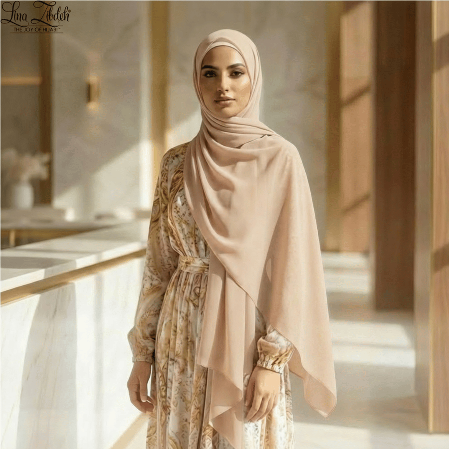 High End Chiffon Hijab in Warm Sand Beige | Chiffon - Elevated™ Maxi Size Hijab