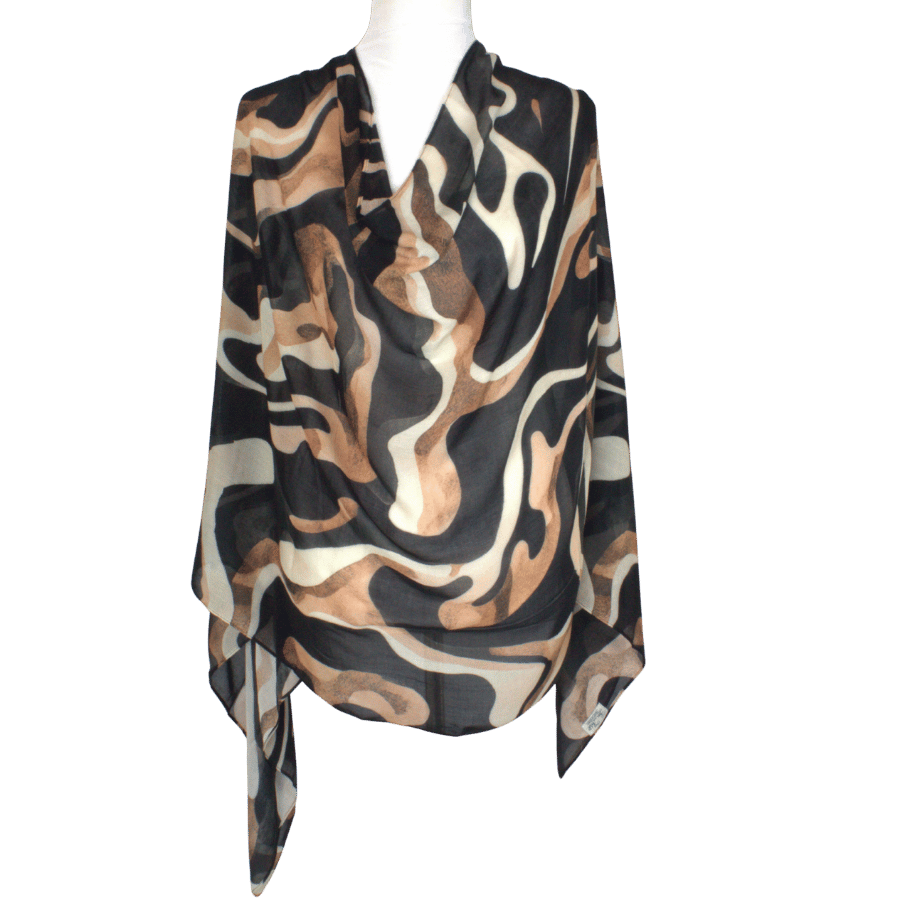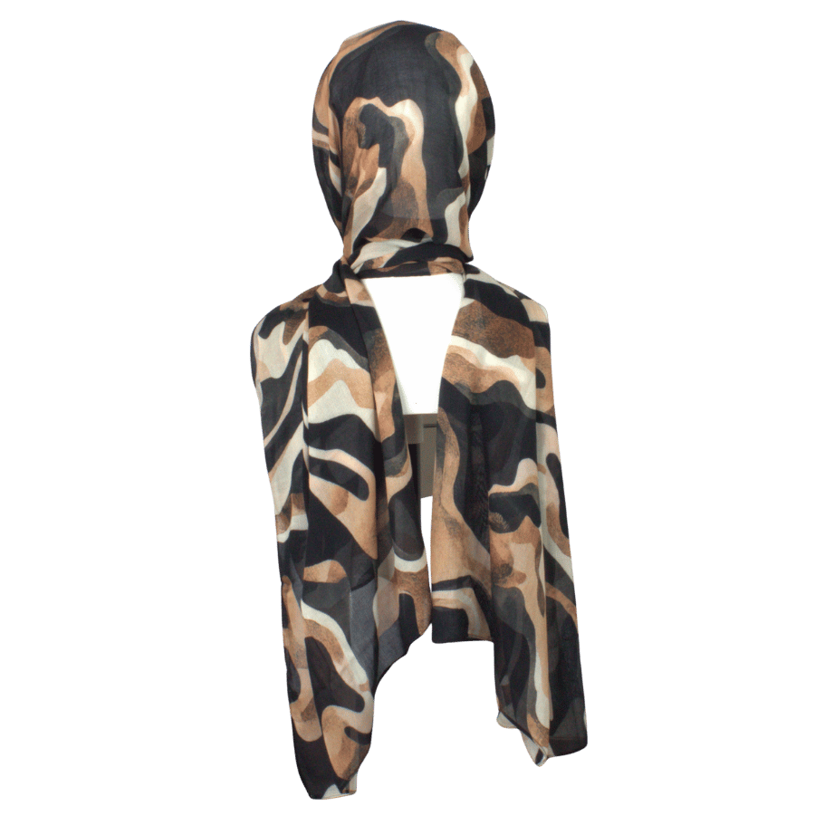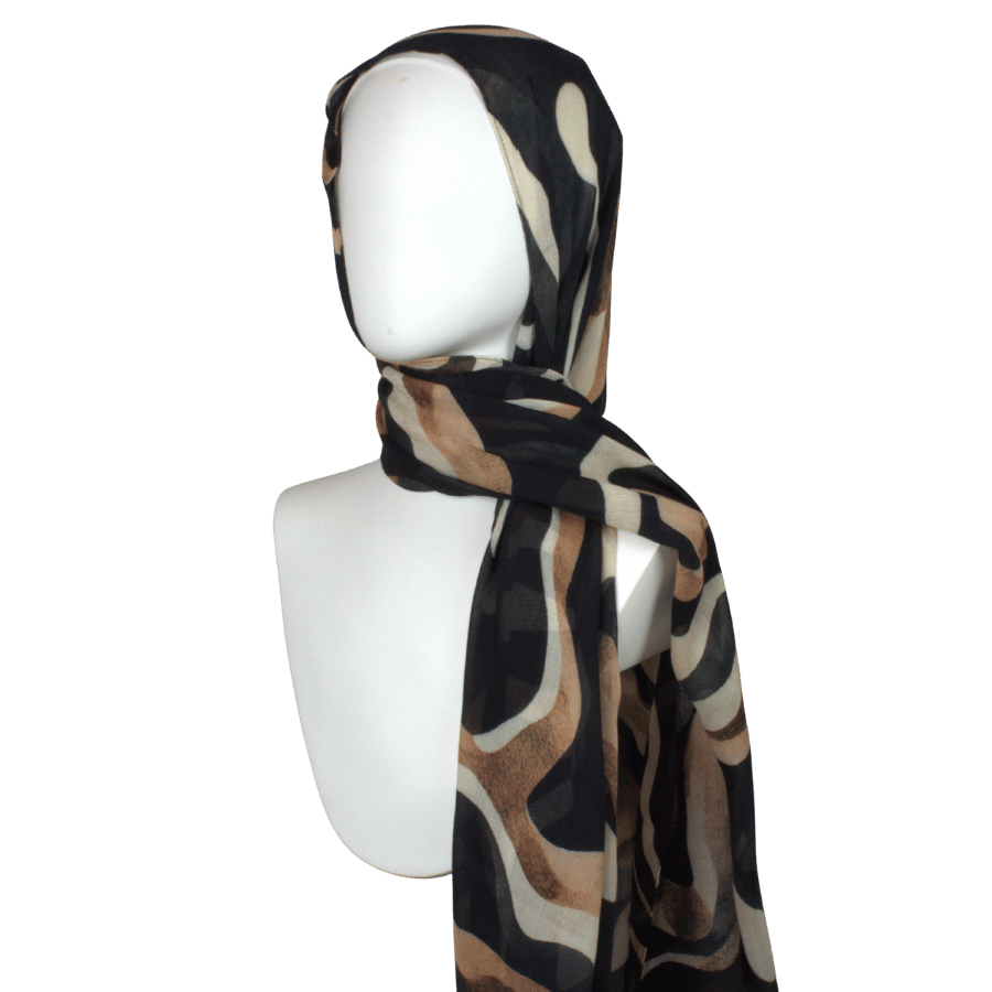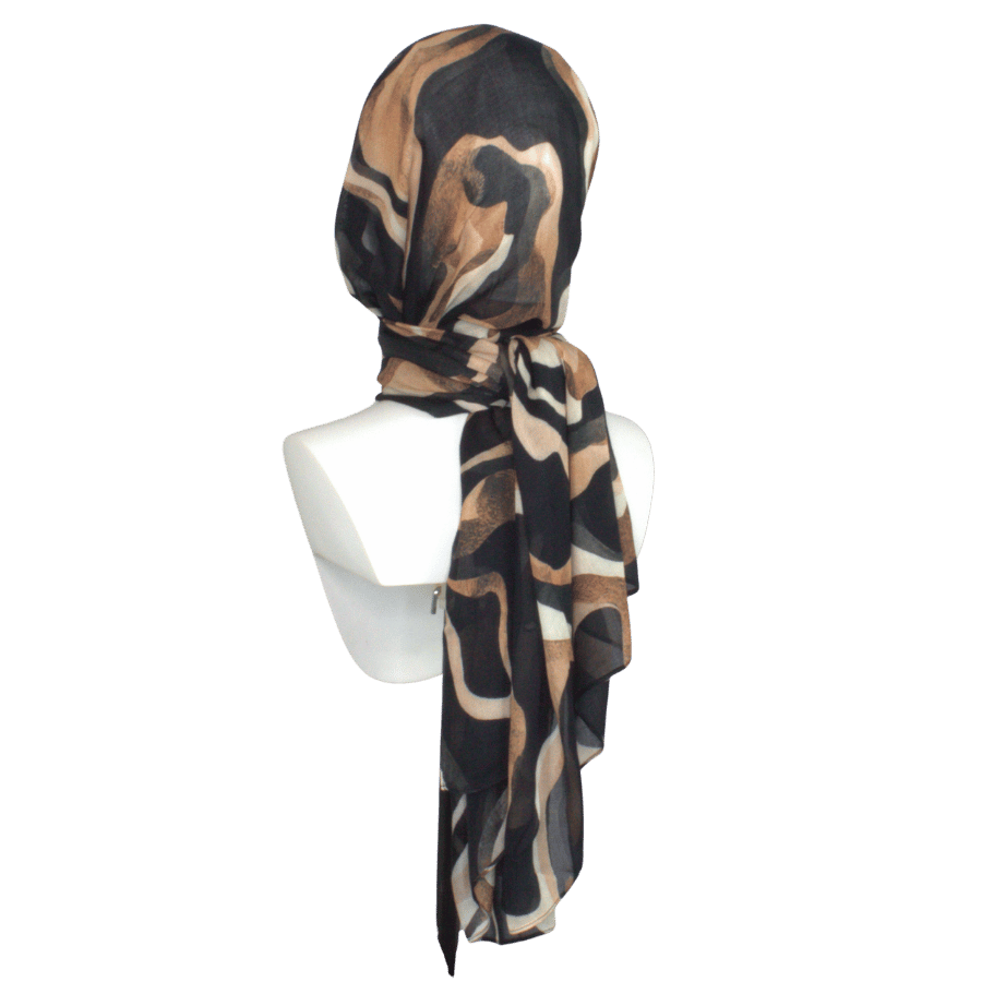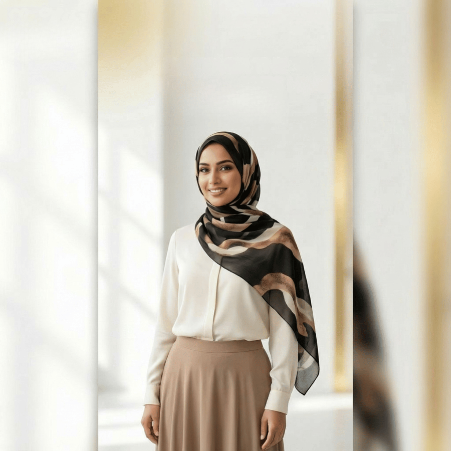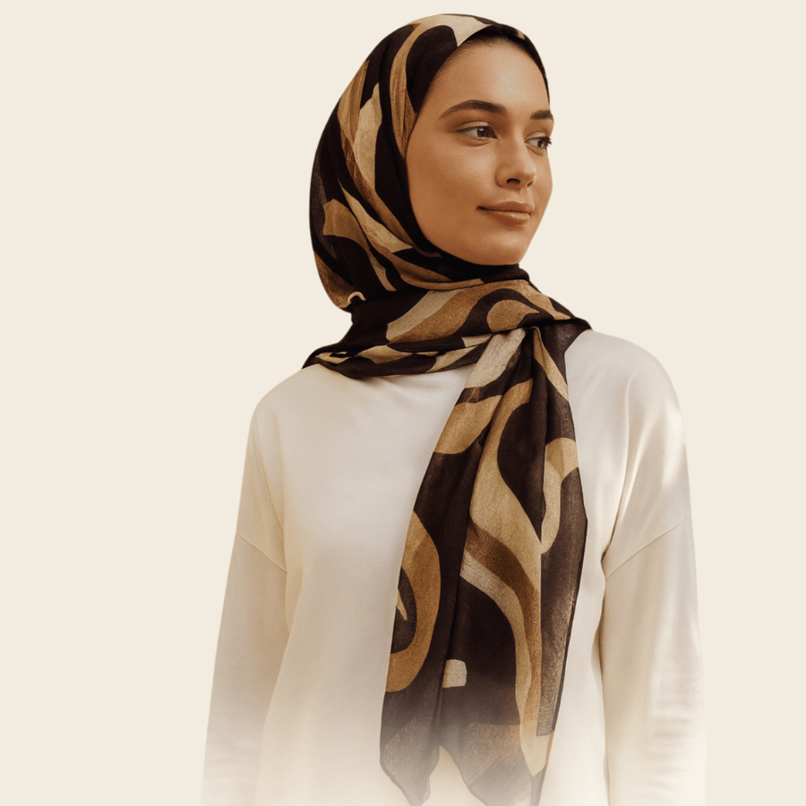 Make an understated statement with Bronzed Strokes — a designer printed hijab rendered in flowing brushstrokes of black, chocolate brown and warm beige. Crafted in our signature 100% premium bamboo‑modal fabric, this piece drapes effortlessly and moves with you, elevating both your everyday and more polished looks.