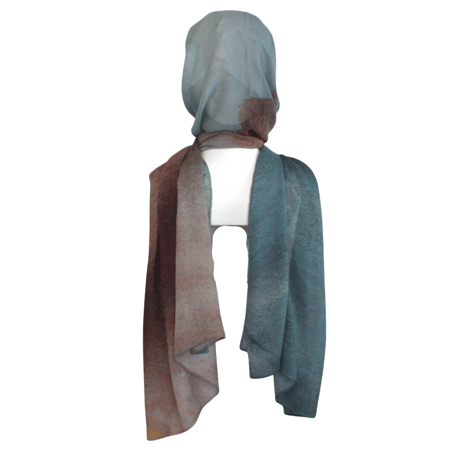 Elaris Ombré – Bamboo Modal Printed Hijab (Teal Chocolate Brown Gradient)