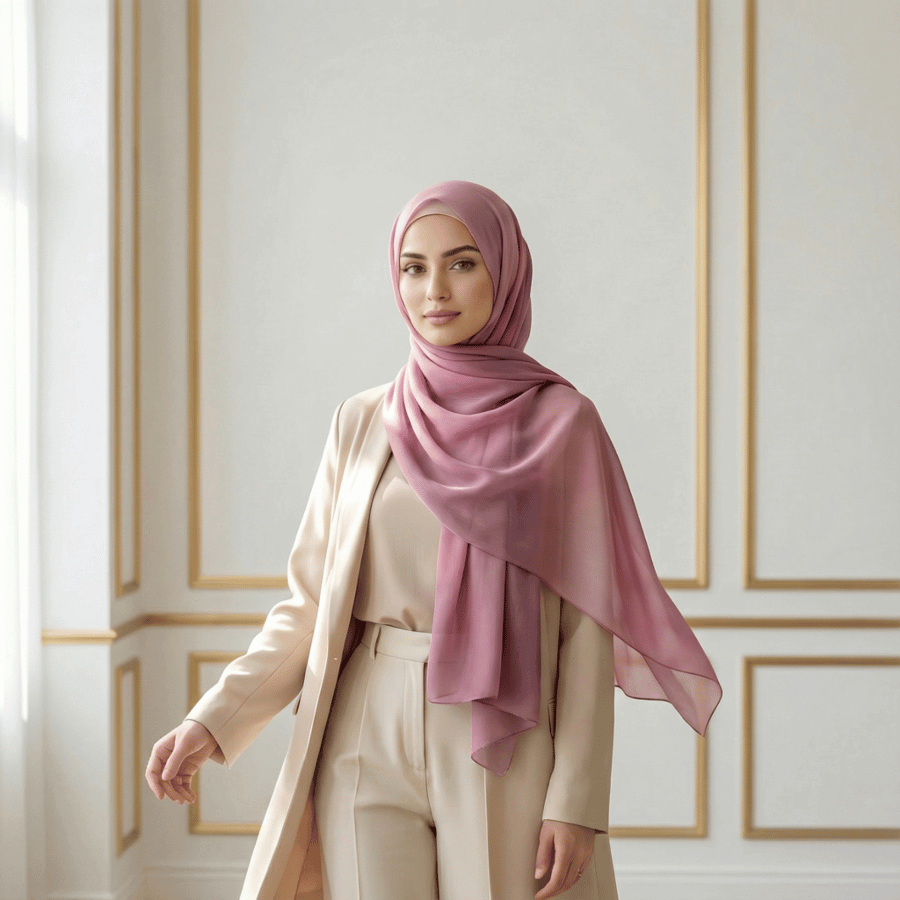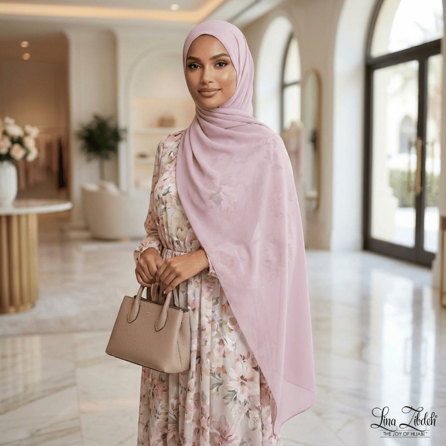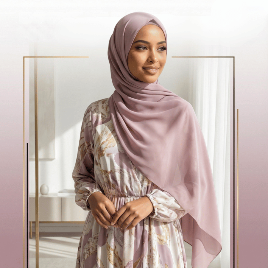 High End Chiffon Hijab in Neutral Blush (Mauve Pink) | Chiffon - Elevated™ Maxi Size Hijab