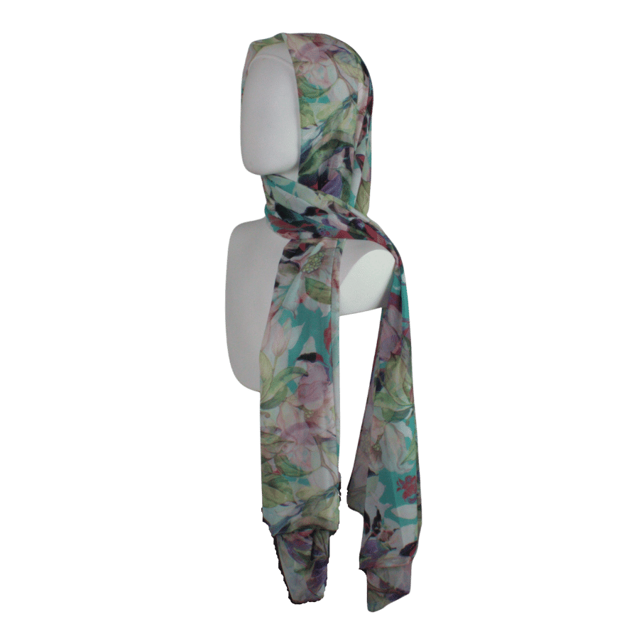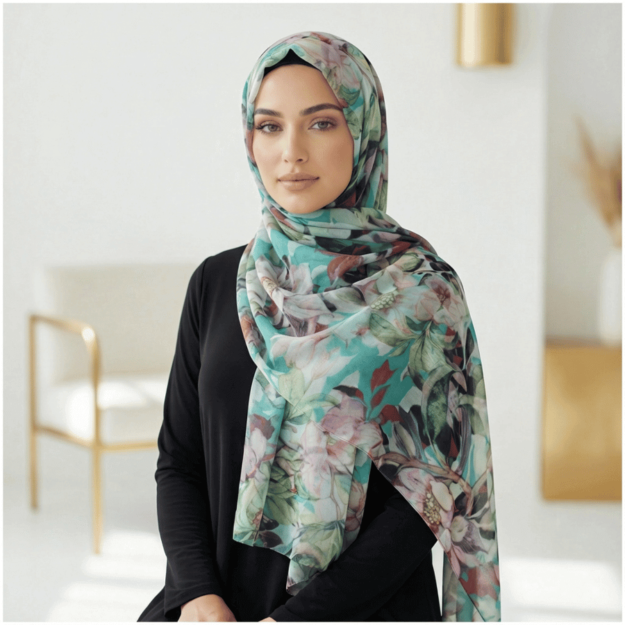This exclusive hijab combines a luxurious print and an elegant combination of green and brown hues.