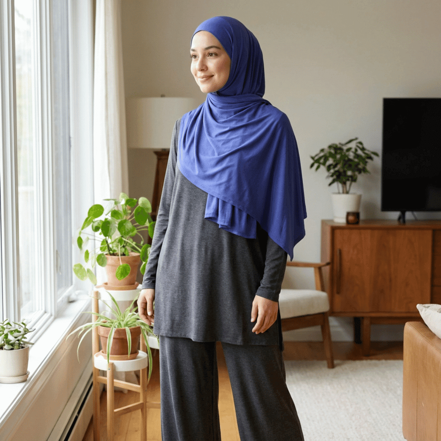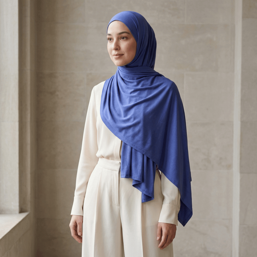 Bamboo Jersey Hijab Periwinkle Violet Blue - Maxi Size (But Not Bulky!)