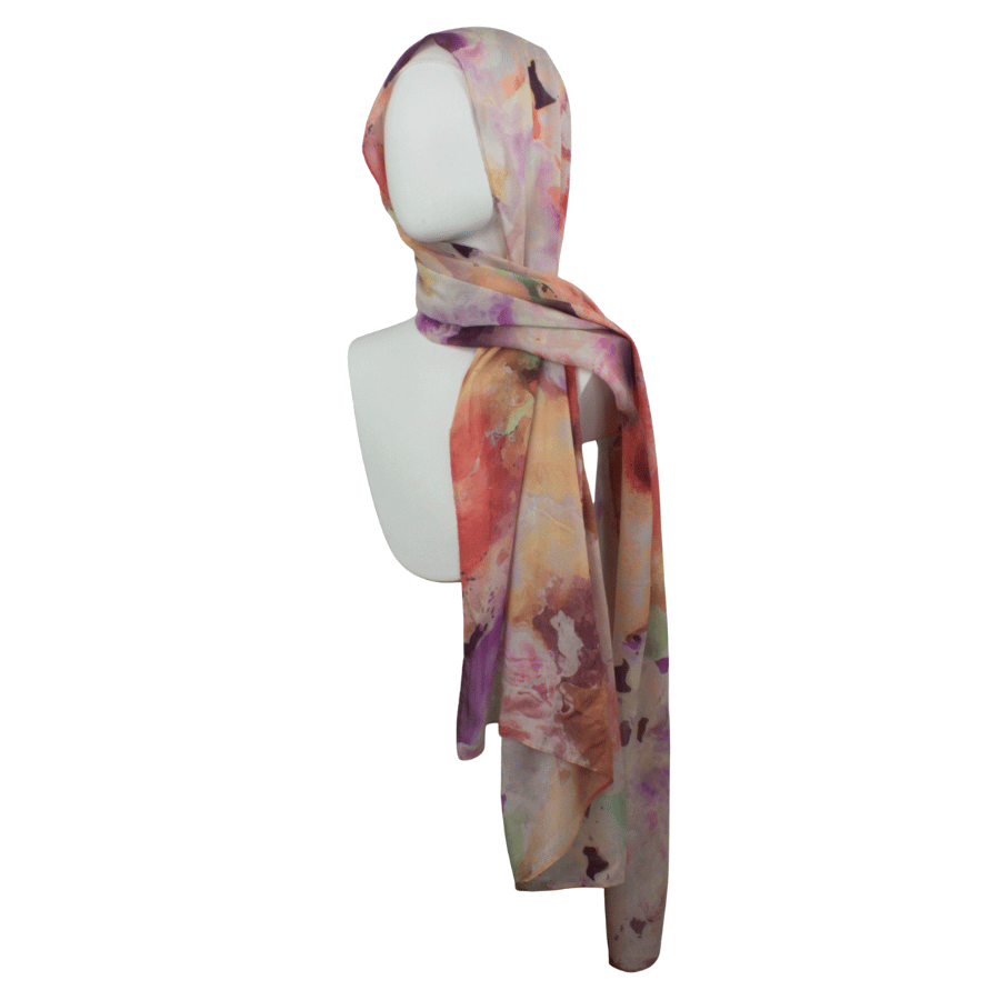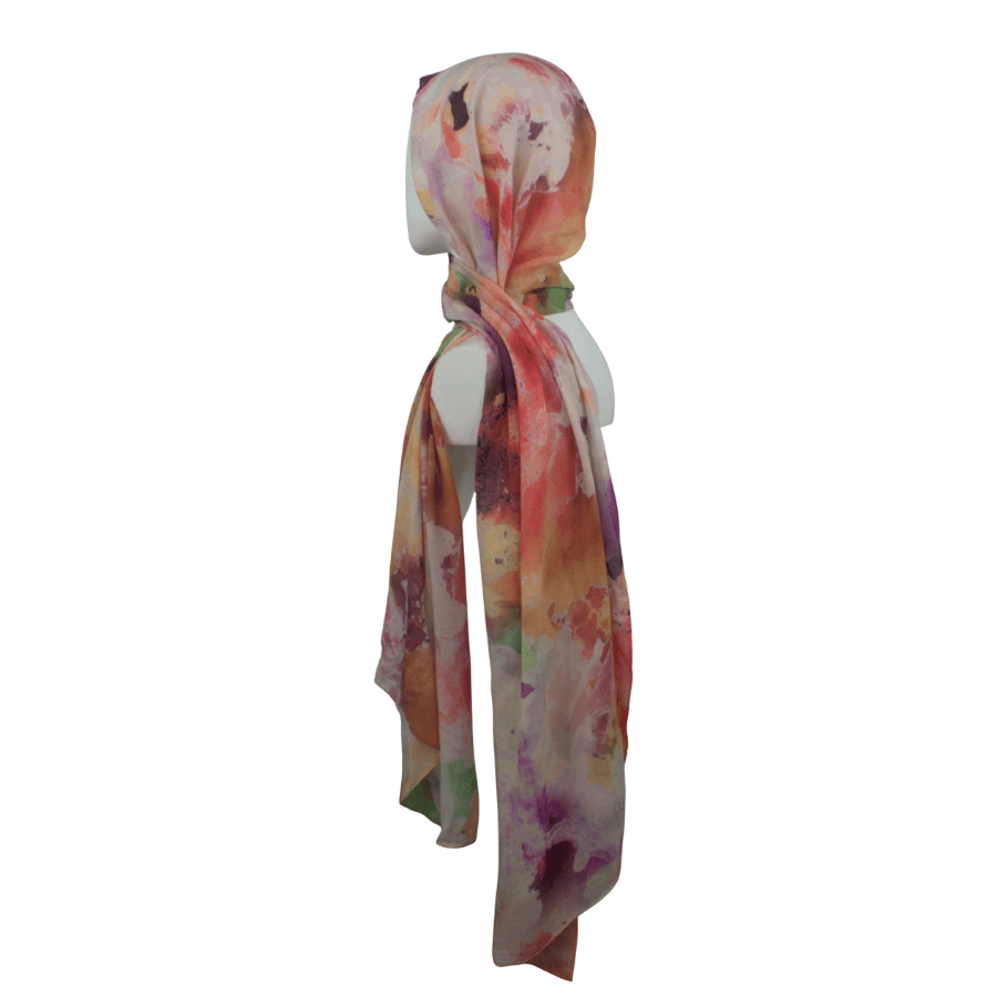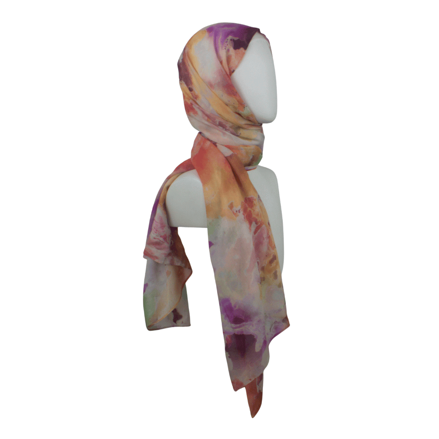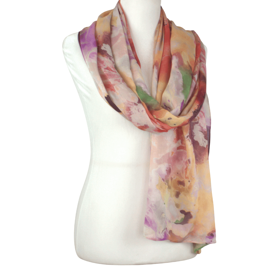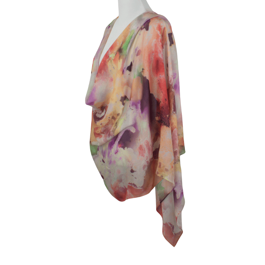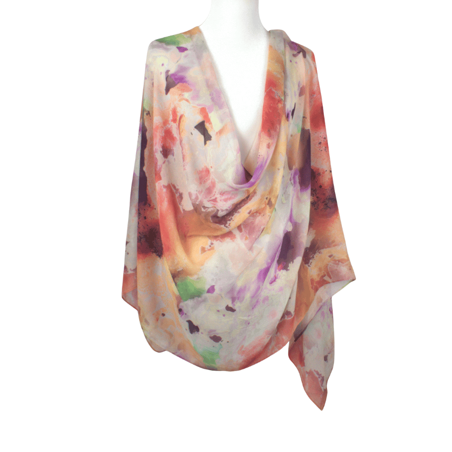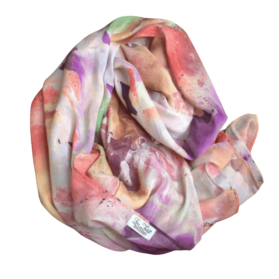 This print is bold yet balanced — expressive without being overpowering. The layered hues create depth and fluidity, making it a standout piece that effortlessly elevates neutral outfits or complements confident, color-forward styling.
