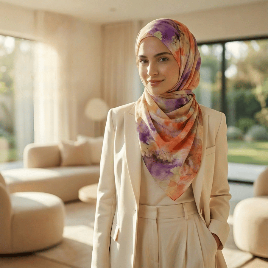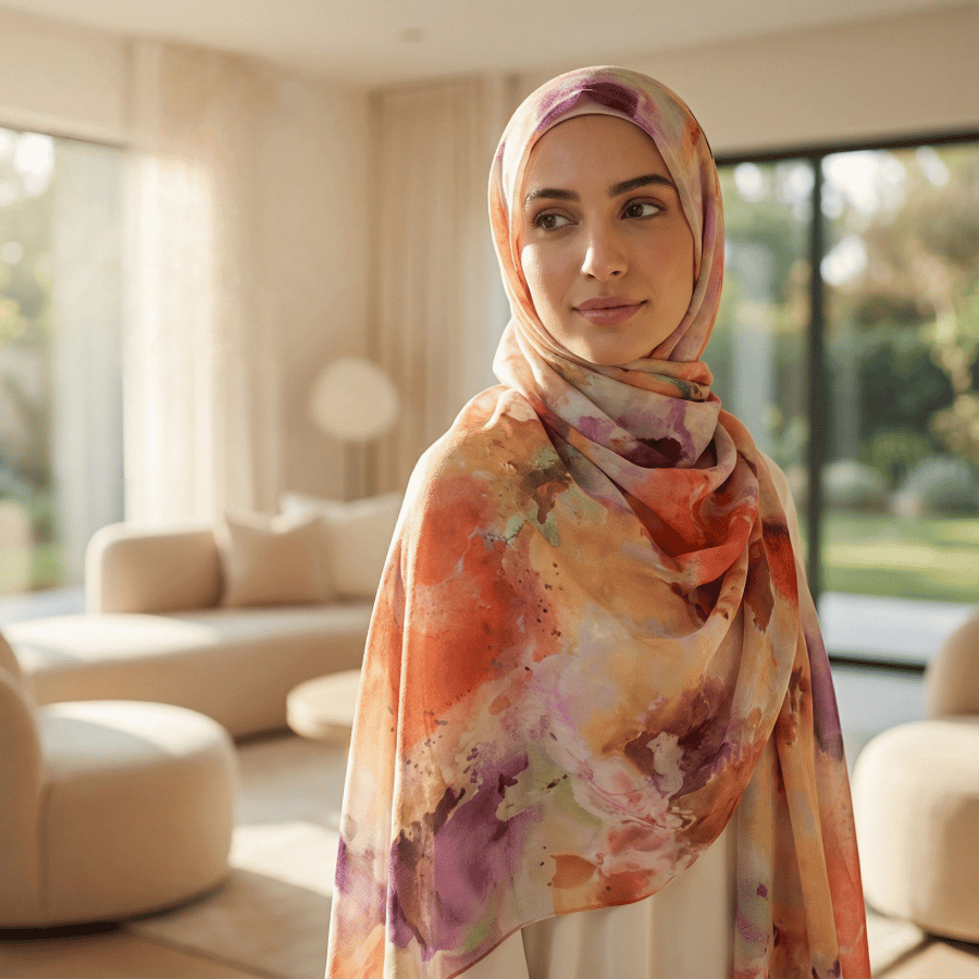 Ember Glow – Watercolor Bamboo Modal Printed Hijab