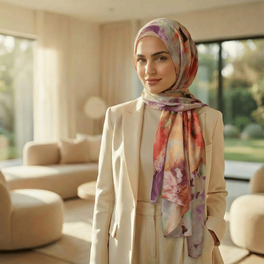 an elegant printed hijab in bamboo modal fabric with attention to details.