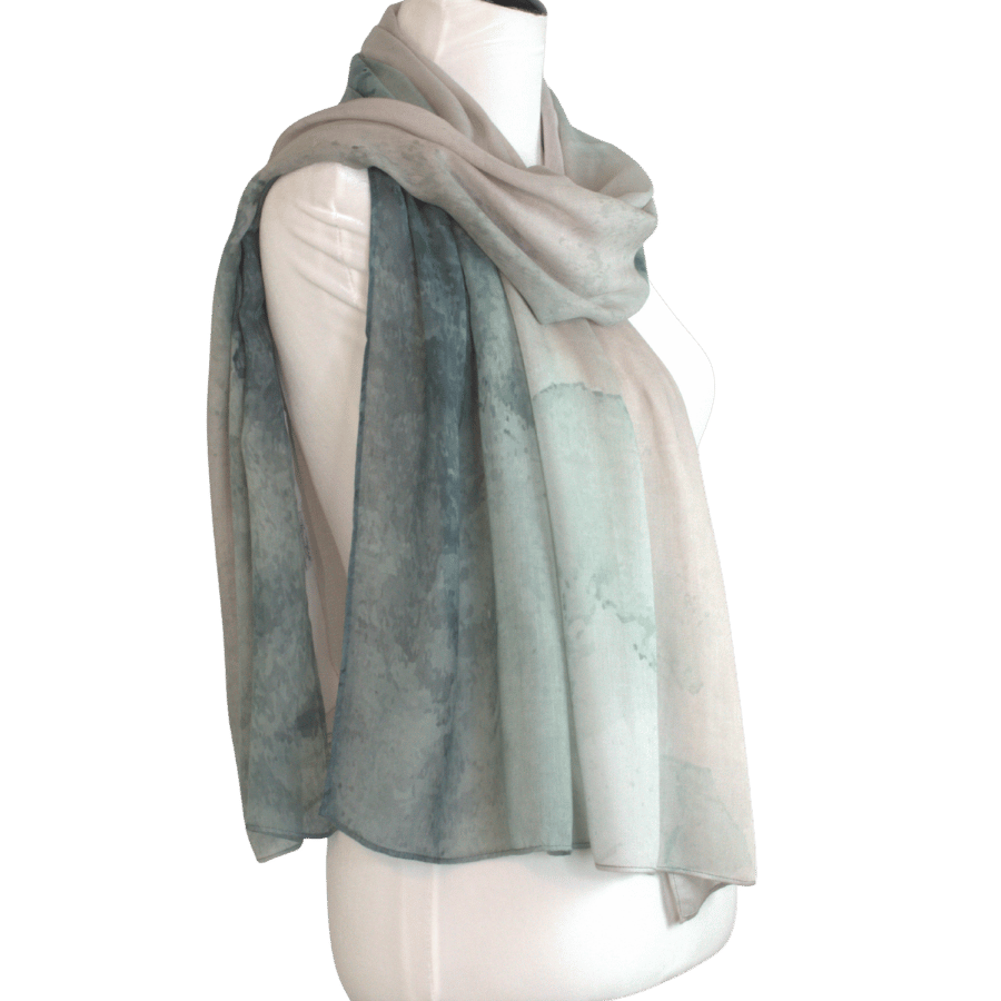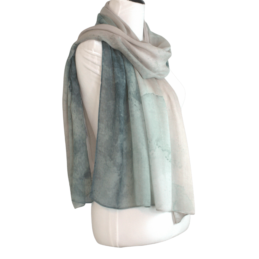 Sahara-Sea SilkTouch Double-Border Hijab – Creamy Beige & Greenish Teal Reversible Printed Bamboo Hijab Scarf