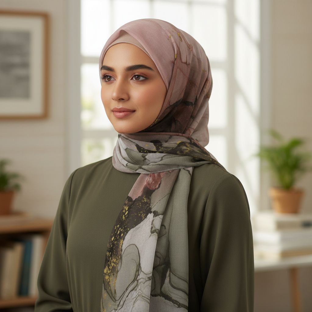 Brushstroke Glow — Soft Luxury Chiffon Watercolor Printed Hijab