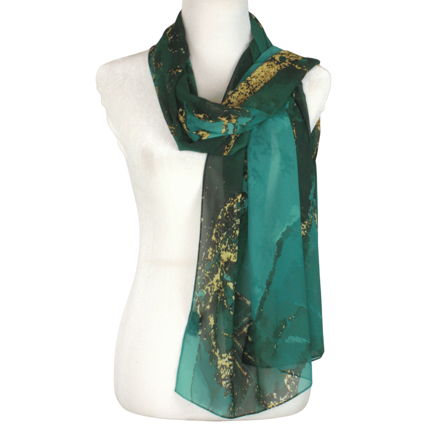 The print is designed to be both timeless and versatile, making it the perfect accessory for elevating any outfit, whether for a formal occasion or a special event. The intricate blend of colors reflects a sense of opulence and refinement, making "Emerald Majesty" not just a hijab, but a statement piece that showcases your impeccable taste and style