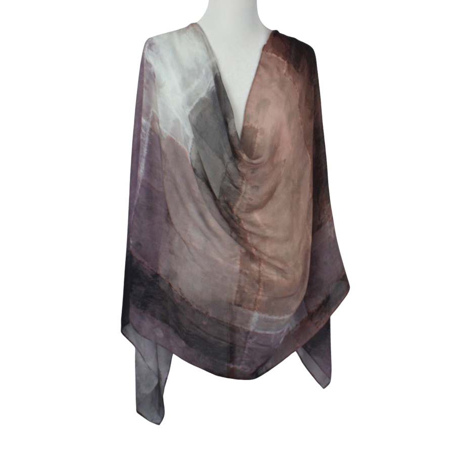Designed with intention, this abstract bamboo modal blends a harmonious mix of muted neutrals: taupe, mauve, blue, grey, brown, black, and a whisper of white. Each shade melts seamlessly into the next, creating a grounded composition that feels calm, refined, and endlessly wearable.