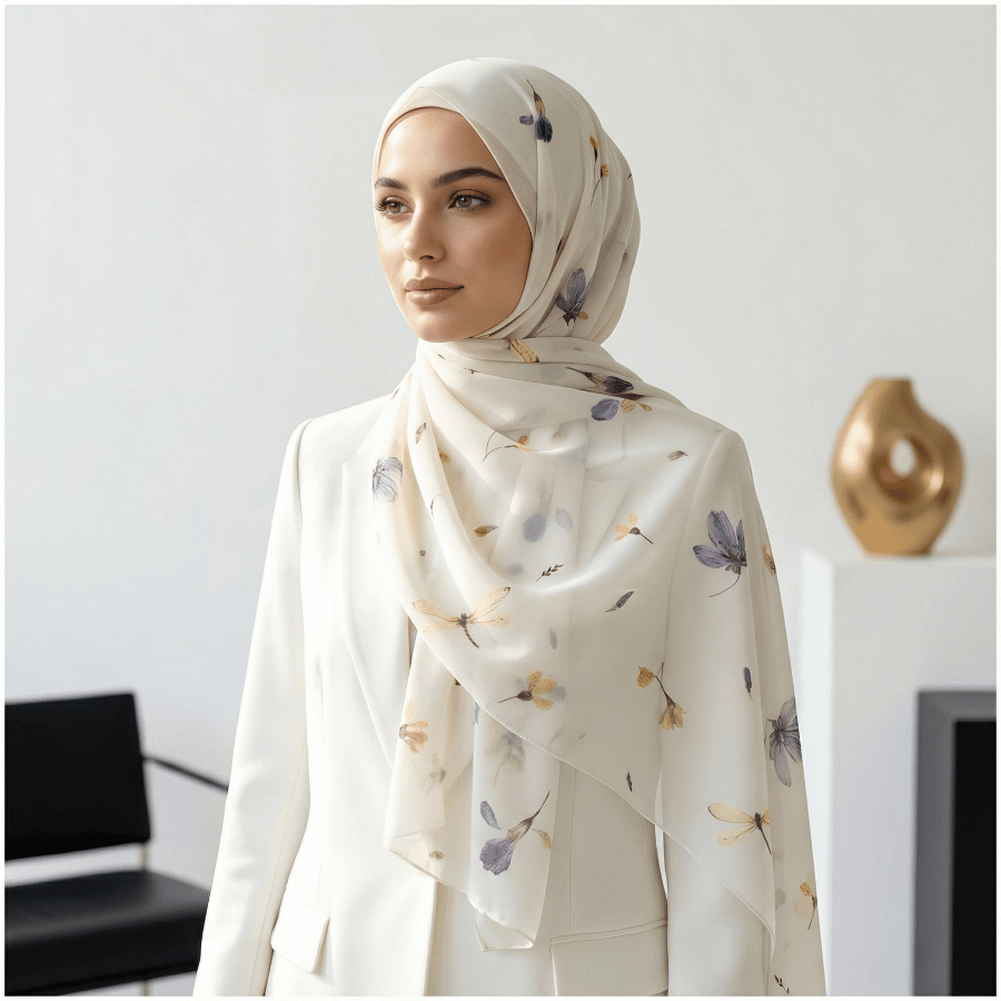 Embrace timeless elegance with Graceful Blooms, a hijab featuring a delicate floral and butterfly print. With its curated blend of versatile colors, this hijab pairs effortlessly with a wide range of outfits, adding a soft, feminine touch that’s perfect for any occasion.