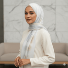 an elegant printed hijab in bamboo modal fabric with attention to details.