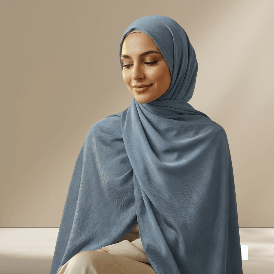 Luxe Elegance Satin Crinkle Hijab - Glacier Lake (Blue Grey with Slate Undertone)